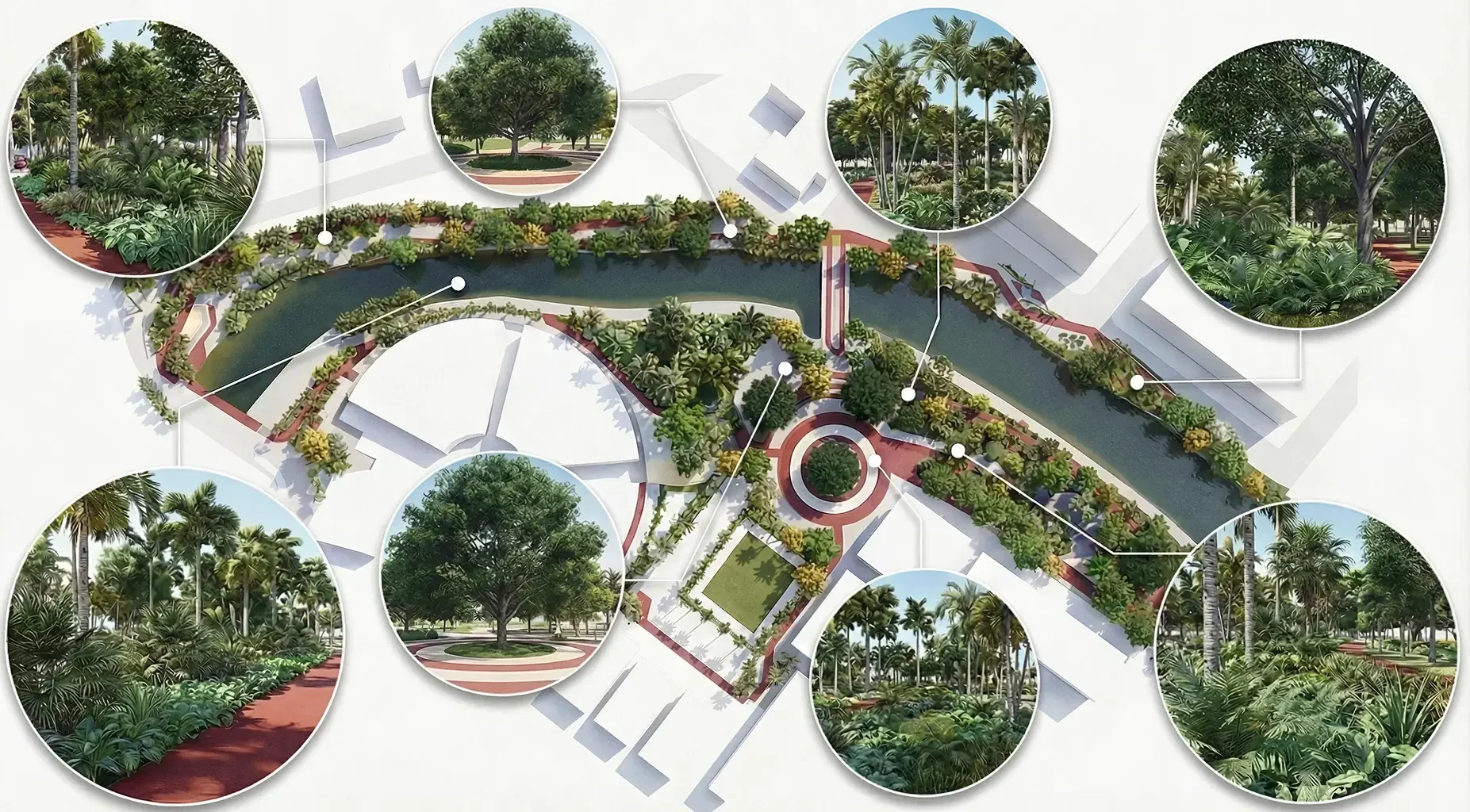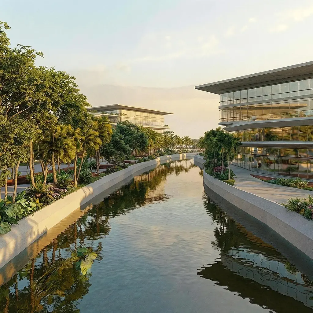 El proyecto propone una intervención paisajística integral para un campus universitario, concebido como un modelo de sostenibilidad y regeneración ecológica. La propuesta se centra en restaurar la identidad natural del sitio mediante el uso de especies nativas tropicales, fortaleciendo los ecosistemas preexistentes y transformando el paisaje en un aula viva para el aprendizaje ambiental.