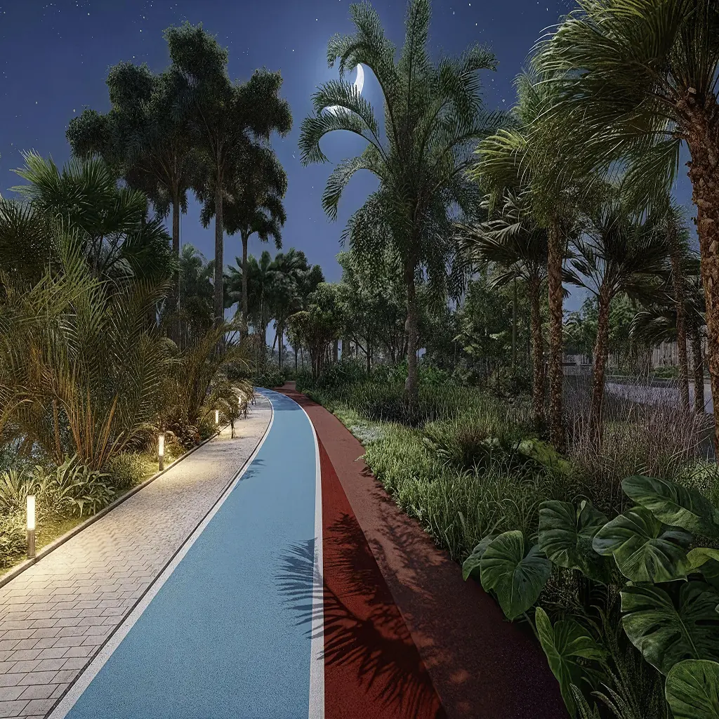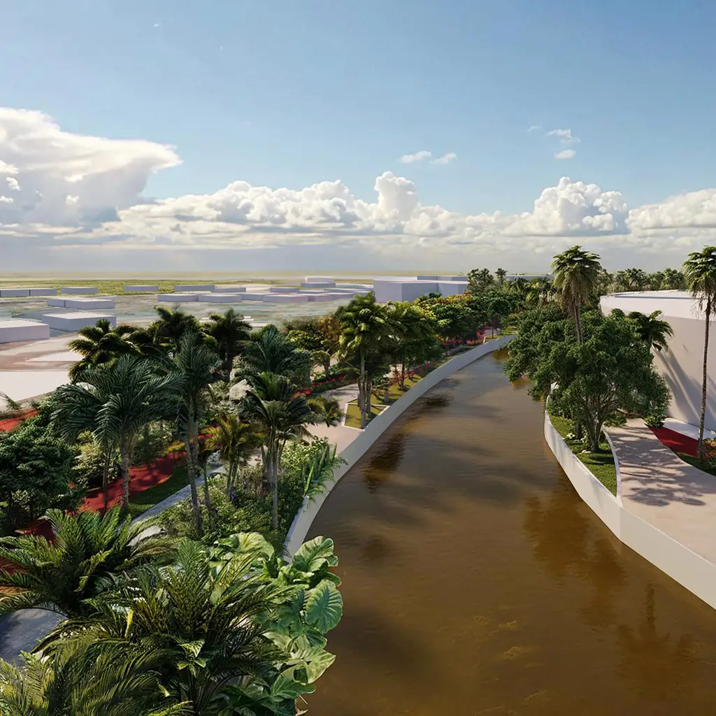 Los senderos peatonales y educativos se integran con el entorno natural, generando recorridos inmersivos que promueven la interacción entre estudiantes, naturaleza y conocimiento. Este proyecto no solo redefine la estética del lugar, sino que también reconecta a la comunidad con el paisaje tropical costero, reivindicando su valor ecológico y cultural.