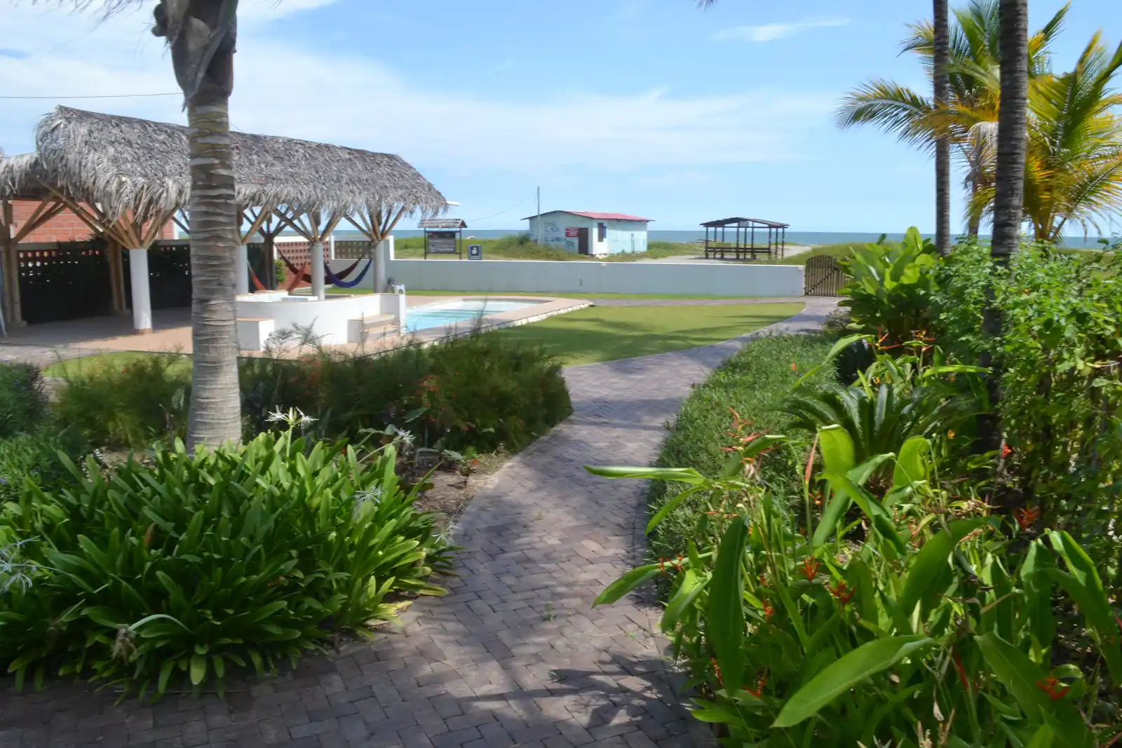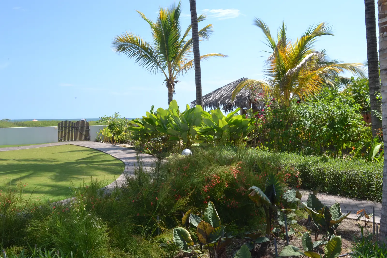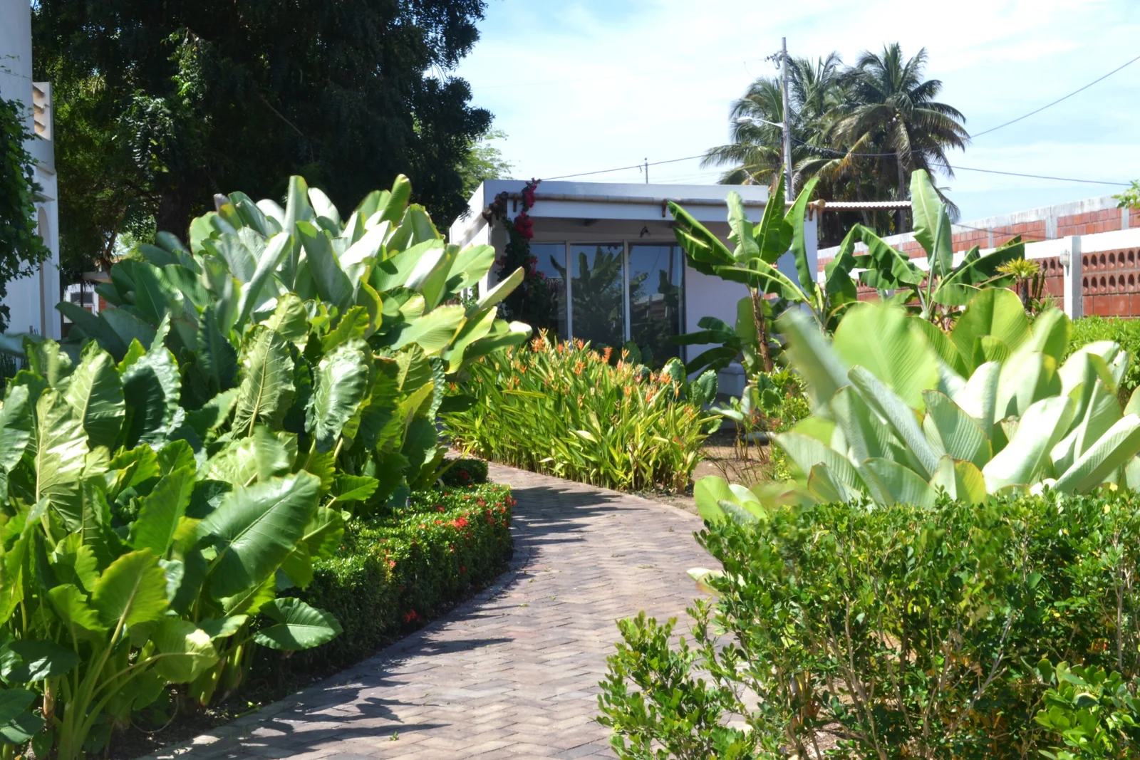 La estrategia consistió en crear barreras naturales de vegetación conformadas por especies nativas adaptadas al ecosistema costero, organizadas en estratos que funcionan como escudos biológicos: herbáceas pioneras que fijan el suelo, arbustos que reducen el impacto del viento, y árboles que generan sombra y microclimas interiores.