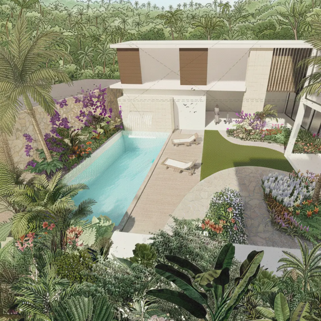 Diseño paisajístico residencial inspirado en el bosque nativo costero. A pesar de las adaptaciones arquitectónicas, el proyecto mantuvo su esencia original al conservar especies autóctonas y un lenguaje natural que conecta arquitectura, entorno y clima.
