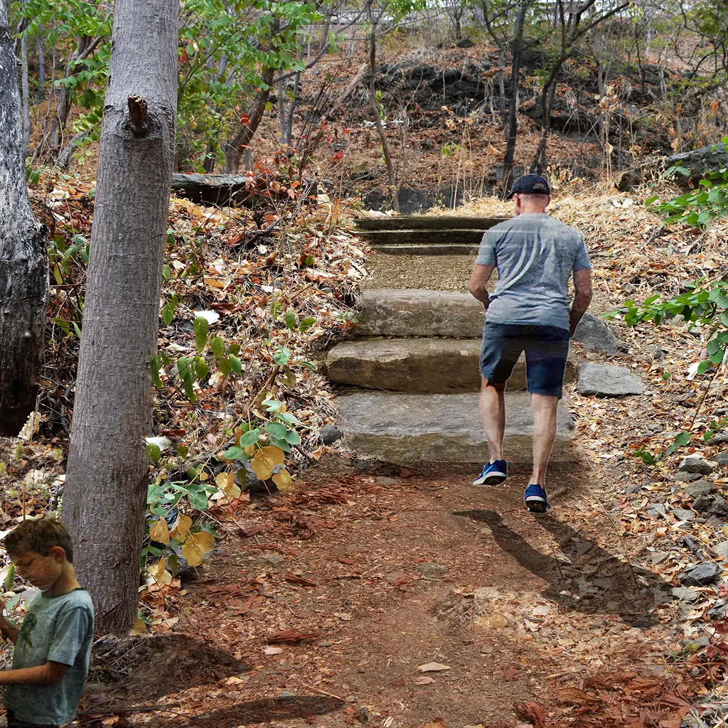El proyecto en el Bosque Protector Palo Santo se planteó como una intervención paisajística de bajo impacto, priorizando la conservación del ecosistema y la mejora de la experiencia del visitante. La propuesta se centró en acciones precisas que fortalecen la seguridad, orientación y valoración ambiental del lugar sin alterar su carácter natural.